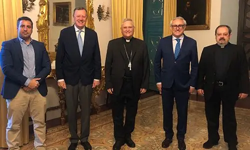 El obispo de Cartagena, Mons. José Manuel Lorca Planes, se ha reunido con el presidente nacional de Acción Social Empresarial (ASE), Javier Fernández-Cid; el delegado en Murcia, José Manuel Martínez; el párroco de la iglesia murciana de San Pablo, Ángel Molina; y el director de relaciones institucionales de la Universidad Católica (UCAM), José Luis Mendoza. El encuentro se ha centrado en la presentación de las actividades y los planes de actuación de la asociación a nivel local y nacional.