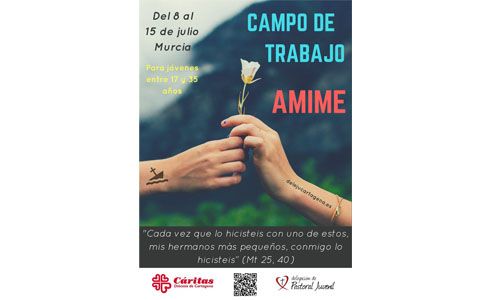 La Delegación de Pastoral Juvenil y Cáritas Diócesis de Cartagena organizan el Campo de Trabajo Amime, para promover un voluntariado cristiano joven y comprometido, dar a conocer entre los jóvenes la obra social que realiza la Iglesia, trabajar esta dimensión vocacional, y sensibilizar y formar sobre voluntariado.