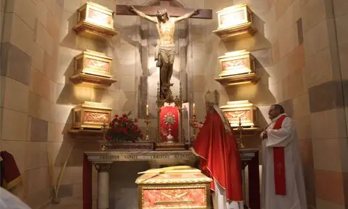 La parroquia de Santa María de Gracia de Cartagena celebró, el pasado viernes 1 de febrero, la Eucaristía de acción de gracias con motivo de la inhumación de las reliquias de los siete beatos mártires cartageneros de la familia vicenciana: un sacerdote y seis laicos. Una capilla de este templo acoge los restos reliquias de Pedro Gambín Pérez (sacerdote), Isidro Juan Martínez, Francisco García Balanza, Modesto Allepuz Vera, Enrique Pedro Gonzálvez Andreu, José Ardil Lázaro y Francisco Roselló Hernández.