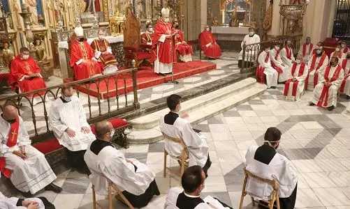 Esta mañana, en la catedral de Murcia, el obispo de Cartagena, Mons. José Manuel Lorca Planes, ha presidido la Eucaristía de apertura de curso del Centro de Estudios San Fulgencio –compuesto por el Instituto Teológico San Fulgencio y los institutos superiores de Ciencias Religiosas San Fulgencio y San Dámaso–. A la celebración han acudido profesores, alumnos y personal no docente del centro de estudios, que además de guardar todas las medidas higiénicas de seguridad han tenido que identificarse a la entrada del templo para mantener las restricciones de aforo vigentes.