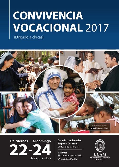El grupo de discernimiento vocacional para chicas Alma Mater Salvatoris de la Universidad Católica de Murcia ha organizado una convivencia vocacional que tendrá lugar del 22 al 24 de septiembre en la Casa de Ejercicios Sagrado Corazón de Guadalupe.