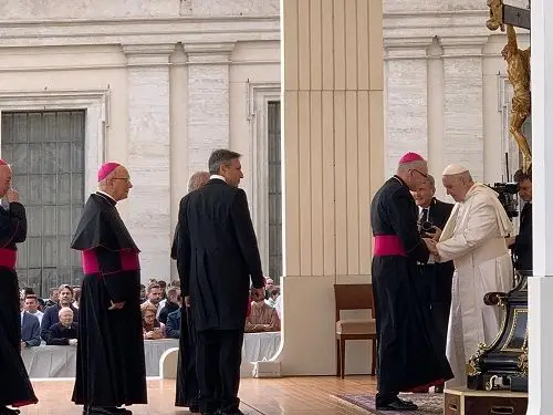 Acompañado por el Obispo de Cartagena, Don Sebastián Chico, Obispo auxiliar electo de la Diócesis de Cartagena, ha participado esta mañana en la Audiencia General del Papa Francisco en la plaza de San Pedro. Al finalizar, ha saludado al Santo Padre: “Le he agradecido que confíe en mí como obispo auxiliar de la Diócesis de Cartagena”. Durante la conversación, también le ha comentado al Papa que los seminaristas le enviaban recuerdos. “Mi madre me pidió que le diera un saludo al Papa y así lo he hecho, él me ha dicho que le pida a ella que rece por él y me ha dado un fuerte abrazo”.