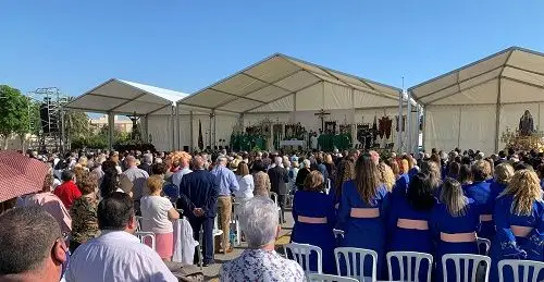 A las 12:00 horas, tenía lugar la celebración de la Eucaristía, presidida por el nuncio apostólico del Papa en España, Mons. Bernardito Auza, acompañado por el obispo de Cartagena, Mons. José Manuel Lorca; el obispo auxiliar, Mons. Sebastián Chico; y el arzobispo emérito de Burgos, Mons. Francisco Gil. Una veintena de sacerdotes participaban en la celebración, entre ellos, el delegado de Hermandades y Cofradías, Silvestre del Amor.