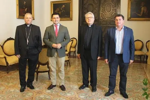 El Obispado de Cartagena ha cedido al Ayuntamiento de San Javier la Plaza de la Iglesia de Pozo Aledo (pedanía de este municipio). La firma de la cesión ha tenido lugar esta mañana en el Palacio Episcopal con la presencia del Obispo de Cartagena, Mons. José Manuel Lorca, y del alcalde de San Javier, José Miguel Luengo.