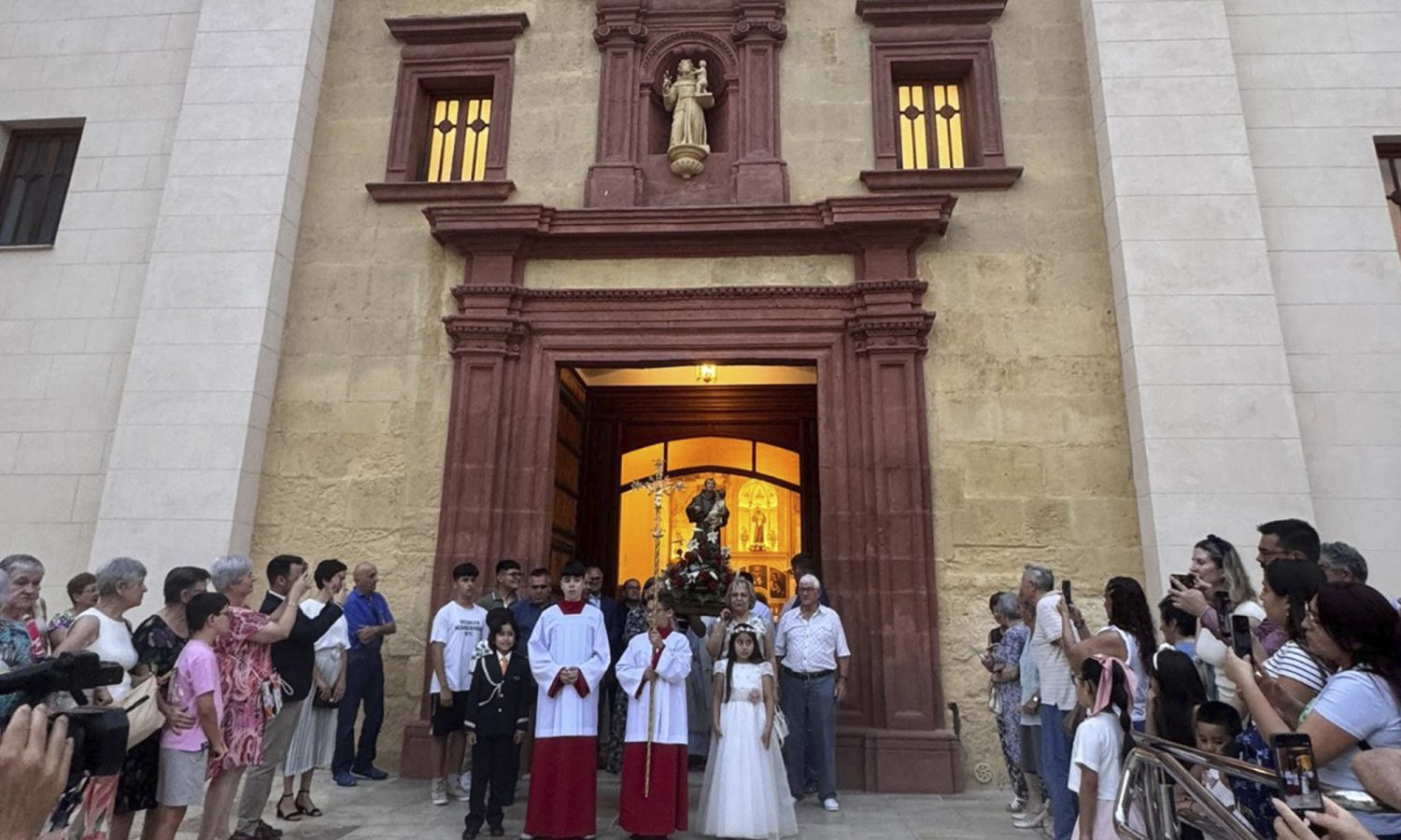 Este día festivo en el municipio comenzaba por la mañana en este templo con la Eucaristía en la que sor Magdalene Waeni Mwilu, religiosa de las Franciscanas de la Purísima Concepción, profesó los votos perpetuos. Por la tarde, al finalizar la misa, los fieles sacaron por primera vez en procesión una pequeña imagen del patrón, «que data de finales del siglo XIX y que llegó hace unos días a la parroquia tras adquirirla en un anticuario» –explica el párroco Antonio José Martínez Lázaro–, ya que la que preside el templo, por su gran tamaño, es más compleja de trasladar. «Fue un momento de alegría e ilusión para grandes y pequeños, que pudieron portar y acompañar la imagen del santo». Después de la procesión, en el templo se pudo venerar la reliquia de san Antonio de Padua que tienen en la parroquia y cuyo relicario está fechado en 1760.