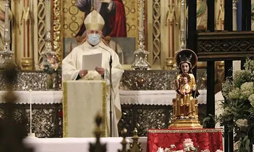 Mons. Lorca Planes destacó algunos atributos de la Virgen, de la que dijo que está «eternamente presente», que es «ejemplo de fidelidad a Jesús» e «icono de la belleza de la fe» que «indica el camino hacia Cristo».