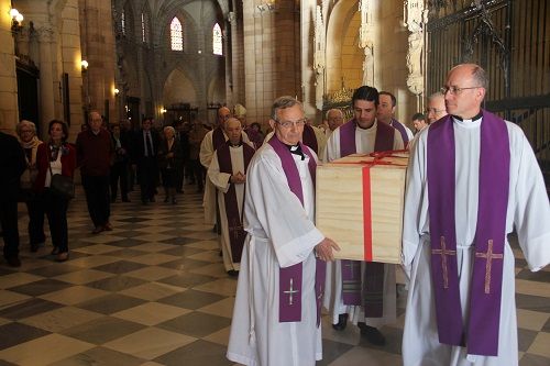 Al finalizar la misa, la caja con los restos fue trasladada a la capilla del Beato Andrés Hibernón, donde se colocó en una urna de piedra cerrada, con copia del documento de inhumación.