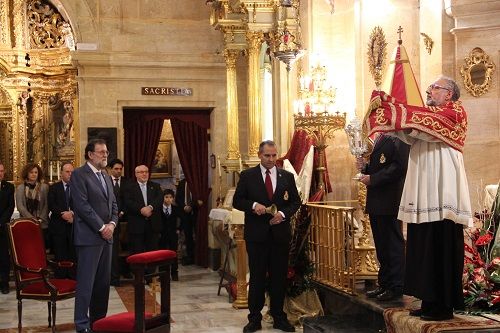 El presidente del Gobierno, Mariano Rajoy, ha peregrinado esta mañana a la Basílica Menor-Santuario de la Vera Cruz. Pasadas las 14:00 horas, Rajoy llegaba a la explanada del recinto. En la puerta de la Basílica le recibía el Obispo de Cartagena, junto a la hermana mayor de la Cofradía de la Vera Cruz y el alcalde de Caravaca.