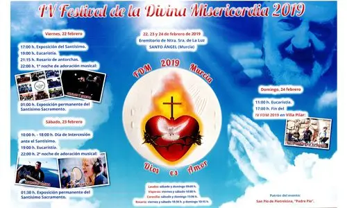 El Festival de la Divina Misericordia celebrará su cuarta edición del 22 al 24 de febrero en el Eremitorio de Nuestra Señora de la Luz en Santo Ángel (Murcia). “Dios es amor”, un texto sacado de la primera carta de san Juan, es el lema de este año “pues de eso se trata, de que la gente que venga pueda experimentar y vivir en su interior que Dios es amor”, comenta el hermano Atanasio.