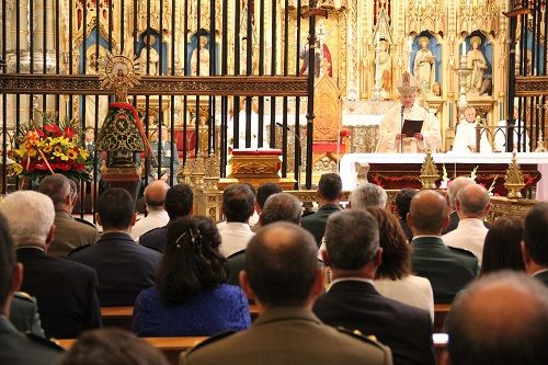 Numerosas autoridades civiles y militares han participado en la Eucaristía en la que el Obispo ha pedido por los guardias civiles: “Le pido a vuestra patrona que os fortalezca y os dé serenidad y aliento para que sigáis construyendo la historia de este Benemérito Cuerpo”, destacando “vuestro valor por defender la bandera de España, al rey, guardando el orden y la ley”.