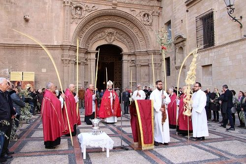 Como cada año, el Obispo de Cartagena presidía la Procesión de las Palmas y la misa en la mañana de Domingo de Ramos en la Catedral. Comenzaba la celebración a las 10:00 horas, en la Plaza de la Cruz, donde, tras leer el Evangelio de Mateo –que recordaba la entrada triunfal de Jesús en Jerusalén–, Mons. Lorca Planes bendijo las palmas y ramas de olivo y se inició la procesión bordeando la Catedral hasta entrar en el templo catedralicio.