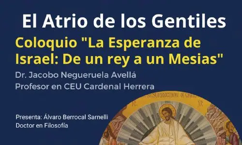 Este viernes habrá un nuevo coloquio de El atrio de los gentiles, a las 21:00 horas. En esta ocasión, Álvaro Berrocal, doctor en Filosofía y moderador de estas charlas, estará acompañado por Jacobo Negueruela, profesor de la Universidad CEU Cardenal Herrera de Elche. Se hará un recorrido por los textos del Antiguo Testamento para poder conocer «qué era exactamente lo que esperaba el pueblo de Israel y cómo interpretaban la promesa divina».